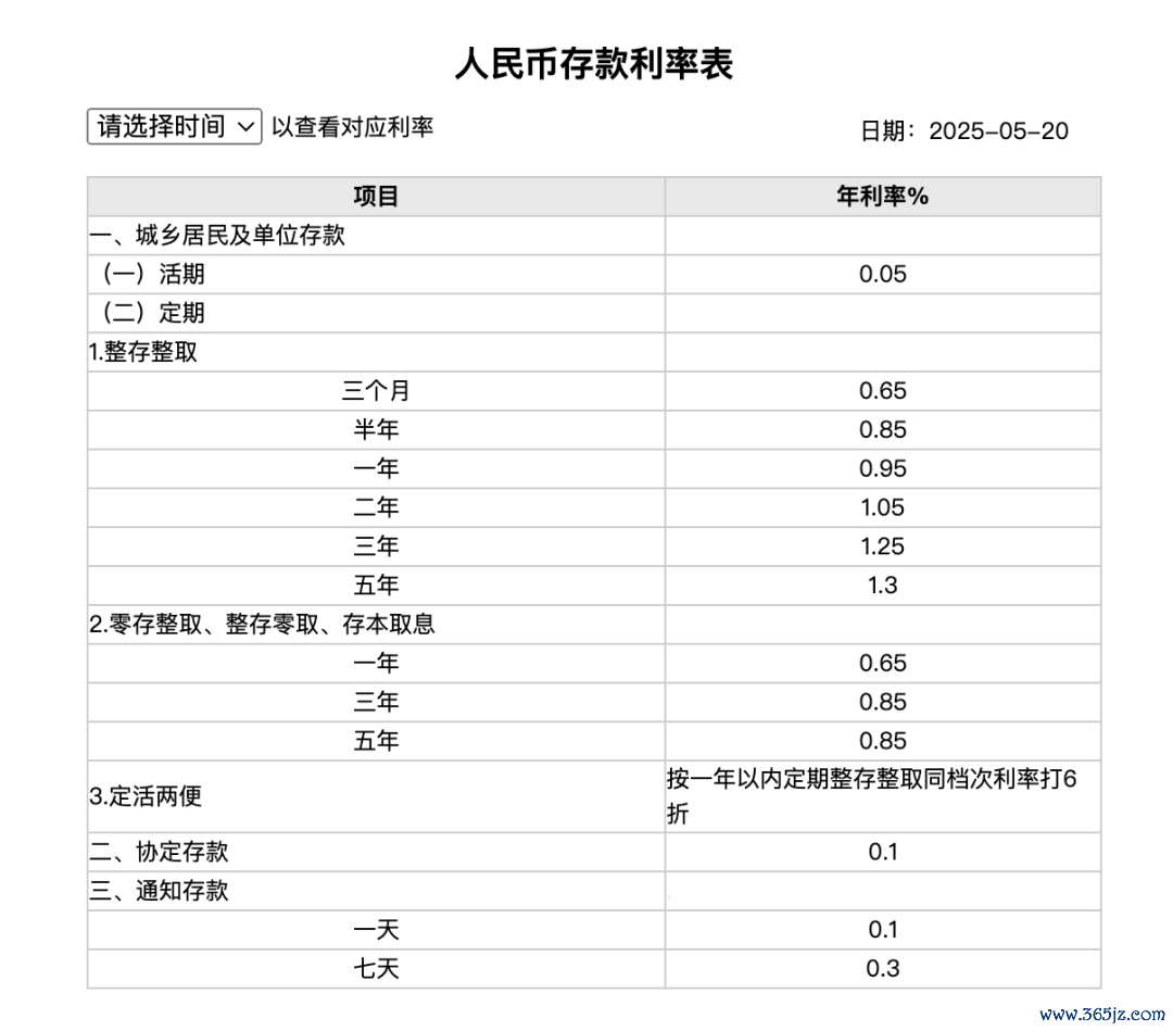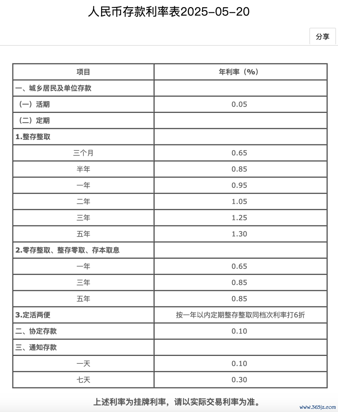 活期存款年利率从0.10%下调5个基点至0.05%;