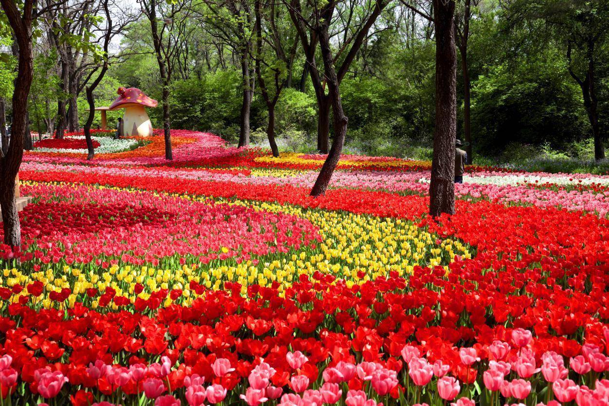 作为东北地区规模较大的郁金香主题花展,沈阳植物园第二十届郁金香花展于4月末至5月中旬持续开展。今年栽植面积达万余平方米,百万株郁金香烂漫绽放。凤凰广场内广场及中轴线、百合塔下、宿根花卉园、百合园四处花展区域齐亮相(宿根花卉园为主展区)。精选重瓣、饰边、百合型、鹦鹉型、渐变色等特殊品种,搭配洋水仙、葡萄风信子等球根花卉,自然混植、大色块铺展,色彩层次丰富。
